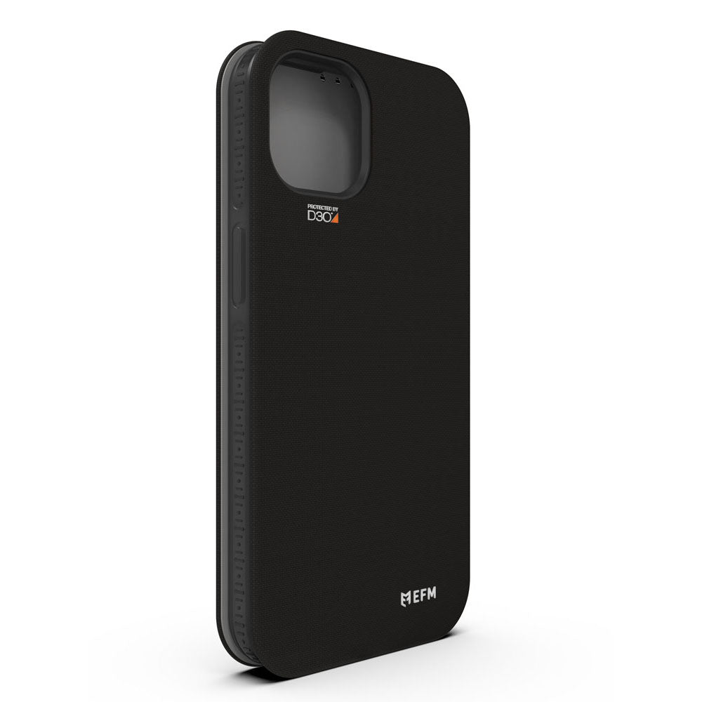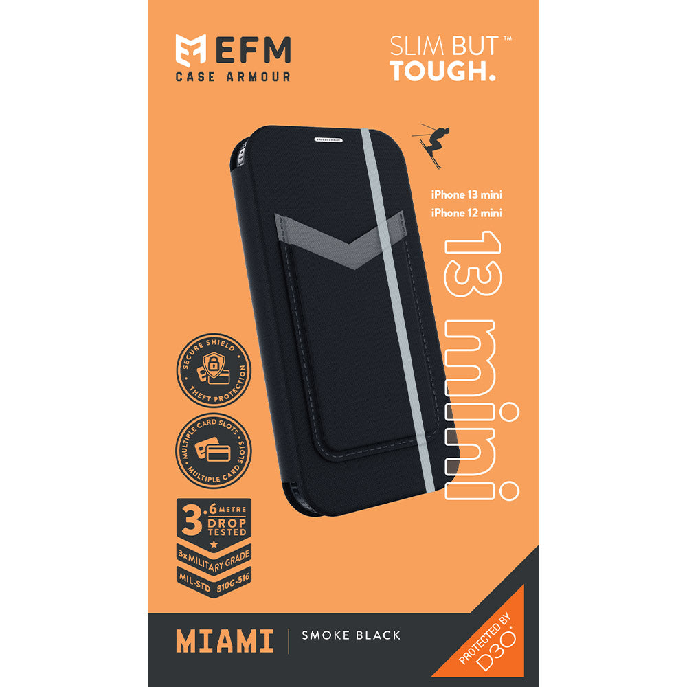 EFM Miami Leather Wallet Case Armour with D3O For iPhone 13/12 mini (5.4") - Smoke Black-Black / Grey