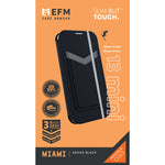The redesigned EFM Miami Wallet is the perfect wallet case for organised, eco-conscious people always on the go! It features sophisticated craftsmanship and is constructed from durable materials offering options for card and notes storage securable with an elastic. This unconventional case offers some unique design features, making this new wallet case protective yet practical whilst being cool. <br><br>The internal casing is constructed with D3O impact protection technology and protects your device from the daily life whilst the outer cover has RFID protection to keep your valuables and your device protected. The cover also acts as a viewing stand to allow you to watch your favourite videos anywhere, anytime. <br><br>The EFM Miami Wallet case are 2.4M drop tested and is made from recycled materials and PC for a premium look, at a low price whilst being kinder to the environment.