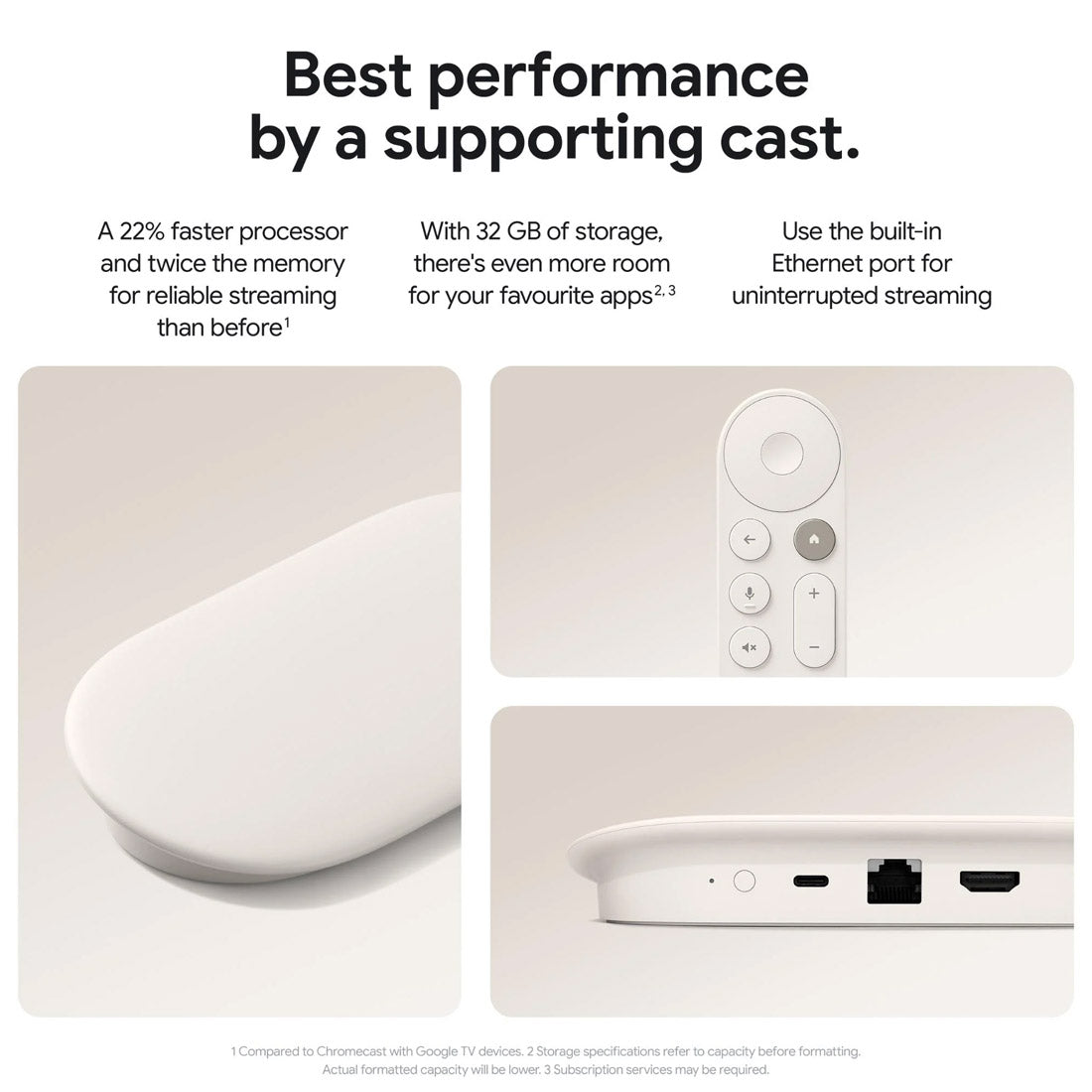 With a 22% faster processor and twice the memory of the previous generation enjoy smooth navigation and quick switching between apps.(Compared to Chromecast with Google TV devices.) -